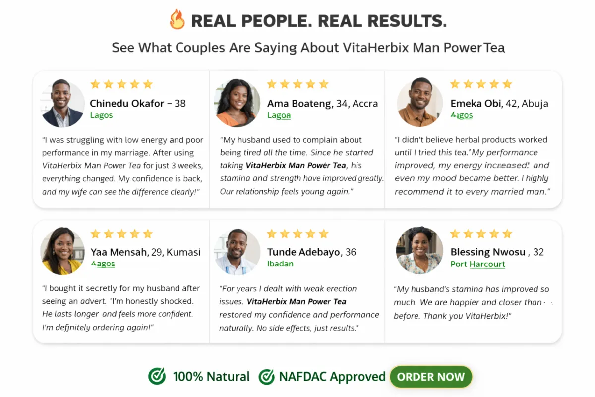 Yes. VitaHerbix Man Power Tea is 100% natural and NAFDAC approved. It is made from carefully selected herbal ingredients designed to support male vitality without harsh chemicals.